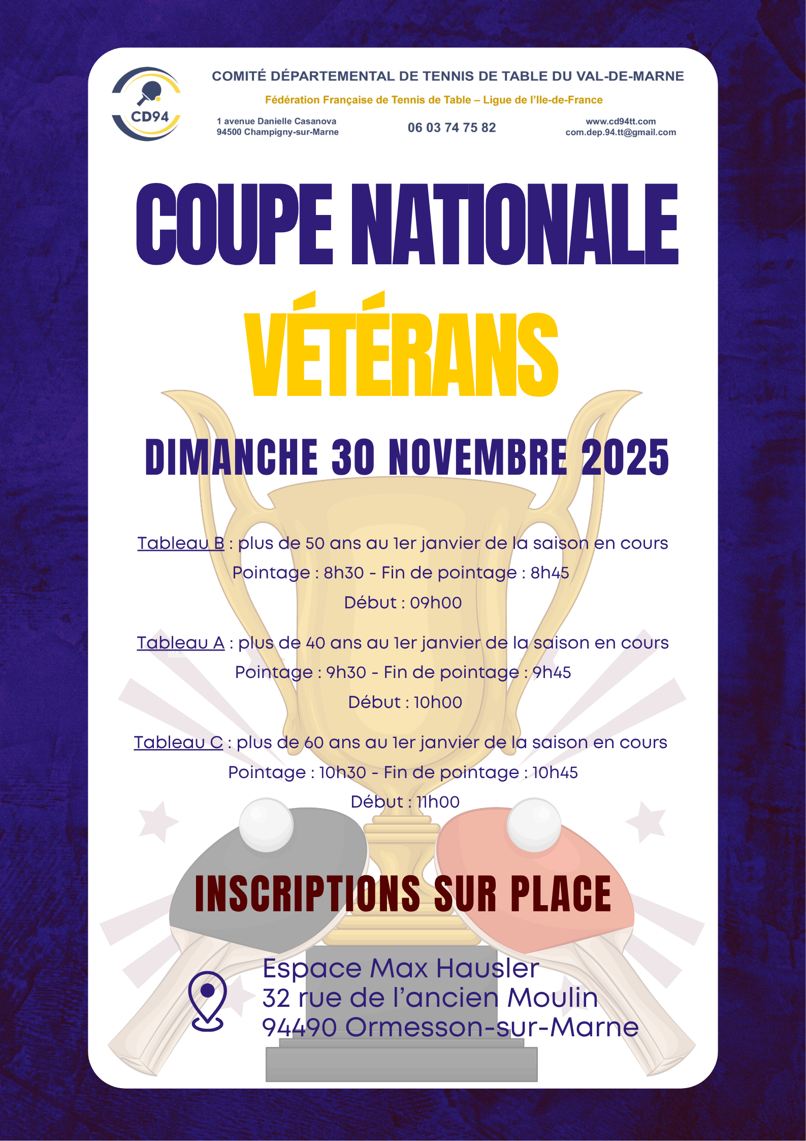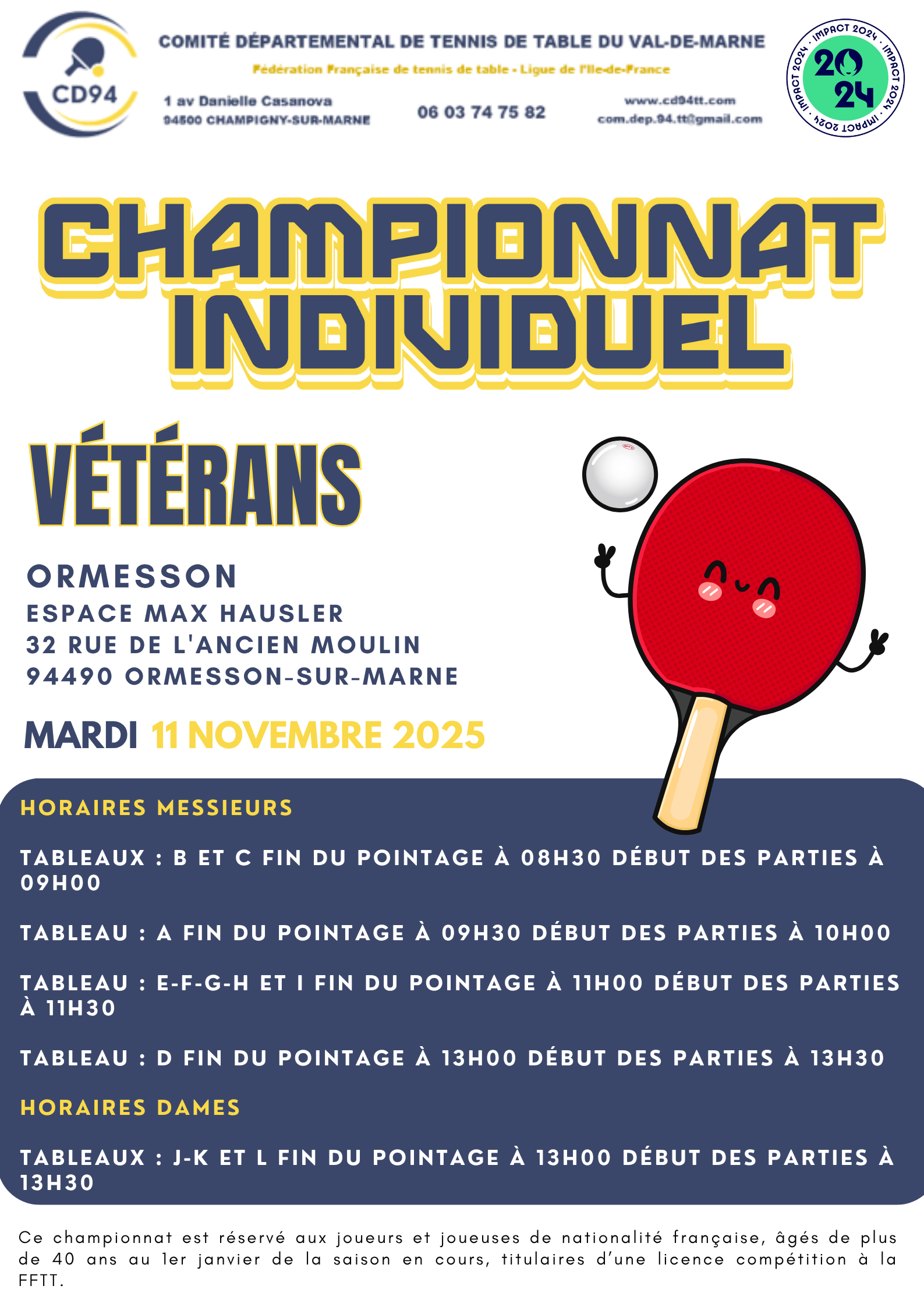 Championnat individuel vétérans 2025-2026 🏓